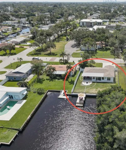 The meticulously landscaped yard showcases over 40 mature palms, advanced landscaping with multiple fruit trees, concrete curbing, new vinyl privacy fencing, paver walkways, and an irrigation system. The waterfront boasts a new seawall with 120 feet of frontage, a 10,000-pound boat lift, a dock, and underwater lights. Enjoy evenings around the fire pit area, making memories with family and friends.