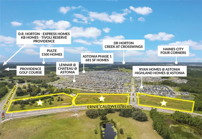 of the Top 20. Property is positioned near Astonia residential development slotted with over 1000+/- lots for Phase 1 & 2 and Ridgewood Lakes DRI with over 1,500+/- lots slotted not including the upcoming developments near Davenport High School by Landsea Homes. Pulte Closed on 1.21.26 on 300+/- acres for 1500+ homes. The nearest retailer to supply the upcoming rooftops is Loughman Publix Shopping center and Posner Park Usages are endless and will be a great traffic corner to supply the demand for the current & upcoming